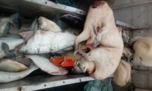 “Um dos bancos do carro foi adaptado para esconder as caças. Pedimos para que eles abrissem o compartimento, de início houve resistência, mas logo nos atenderam e constatamos que havia carne de animais silvestres e peixe que é proibido a pesca”, relata o Sargento Domingues Ortiz.