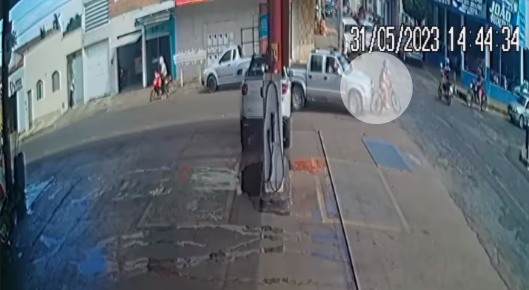 Uma ciclista ficou ferida após ser atropelada por uma caminhonete, nesta quarta-feira, 31, em Itapuranga (GO), a cerca de 160 km de Goiânia. Imagens de uma câmera de segurança de um posto de combustíveis registraram o acidente.