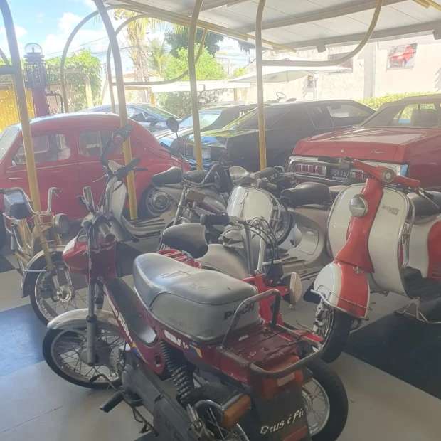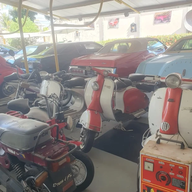 Estes dois últimos foram adquiridos na maior feira de carros antigos do mundo, na Pensilvânia, EUA, em 2010. As duas lambretas e duas vespas completam o acervo, sendo a primeira lambretta, modelo 1958, uma recriação de sua própria juventude. “Tive uma lambretinha quando era jovem e morei em Belo Horizonte. Quando vi um modelo exatamente igual ao que eu tive, comprei, restaurei e trouxe pra cá. Mas com o trânsito como está hoje em dia, tenho medo de andar nela”, admite.