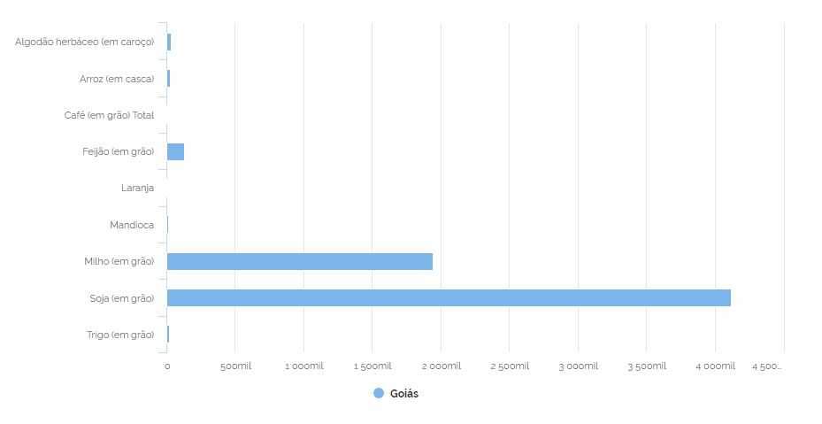 A pesquisa de Produção Agrícola Municipal do IBGE apontou que Goiás apresenta uma produção de azeitonas tão baixa que nem consta na tabela do Instituto. O agronegócio goiano, que produz em monoculturas, apresenta preferência por grãos, como soja e trigo.